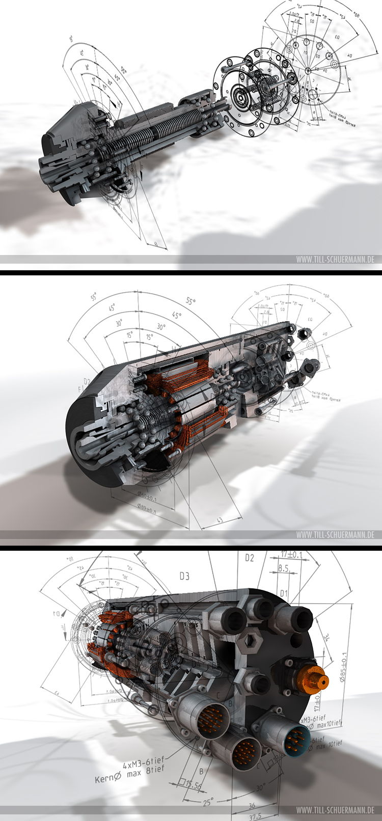 Computeranimation einer sich zusammensetzenden Spindel der Firma IMT. Gibt es als Filmausschnitt in meinem