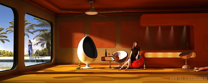 Computergeneriertes Haus mit echten Bewohnern. Die Szene gibt es als Filmausschnitt in meinem