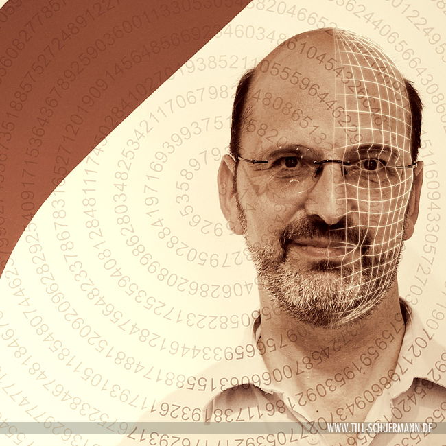 | Prof. Albrecht Beutelspacher, Mathematiker. Professor für Geometrie und Diskrete Mathematik an der Universität Gießen, Gründer des Mathematikums, des ersten mathematischen Mitmachmuseums der Welt, ausgezeichnet mit dem Deutschen IQ-Preis 2004. Setzt sich ein für die verständliche und unterhaltsame Mathematik. Hier steht er inmitten der Zahl Pi, einer ebenso interessanten wie sperrigen Zahl. |